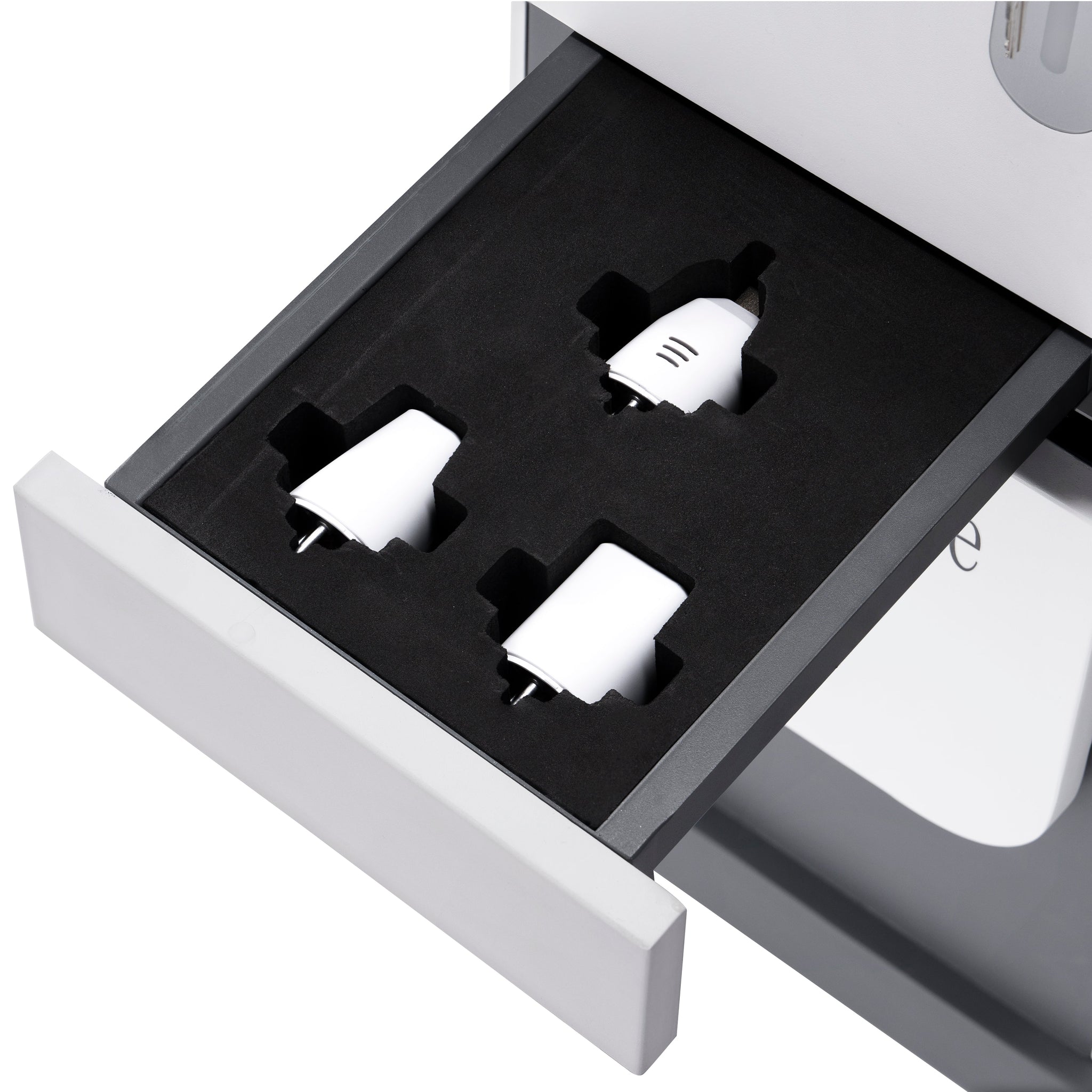Hand-piece #3: the Ergonomic 45° Vacuum-Assisted Dual Lipolysis Massager harnesses the combination of two precisely angled ultrasonic cavitation probes, low frequency acoustic waves and dynamic negative pressure to optimize cellulite reduction and lymphatic drainage. (For Body)