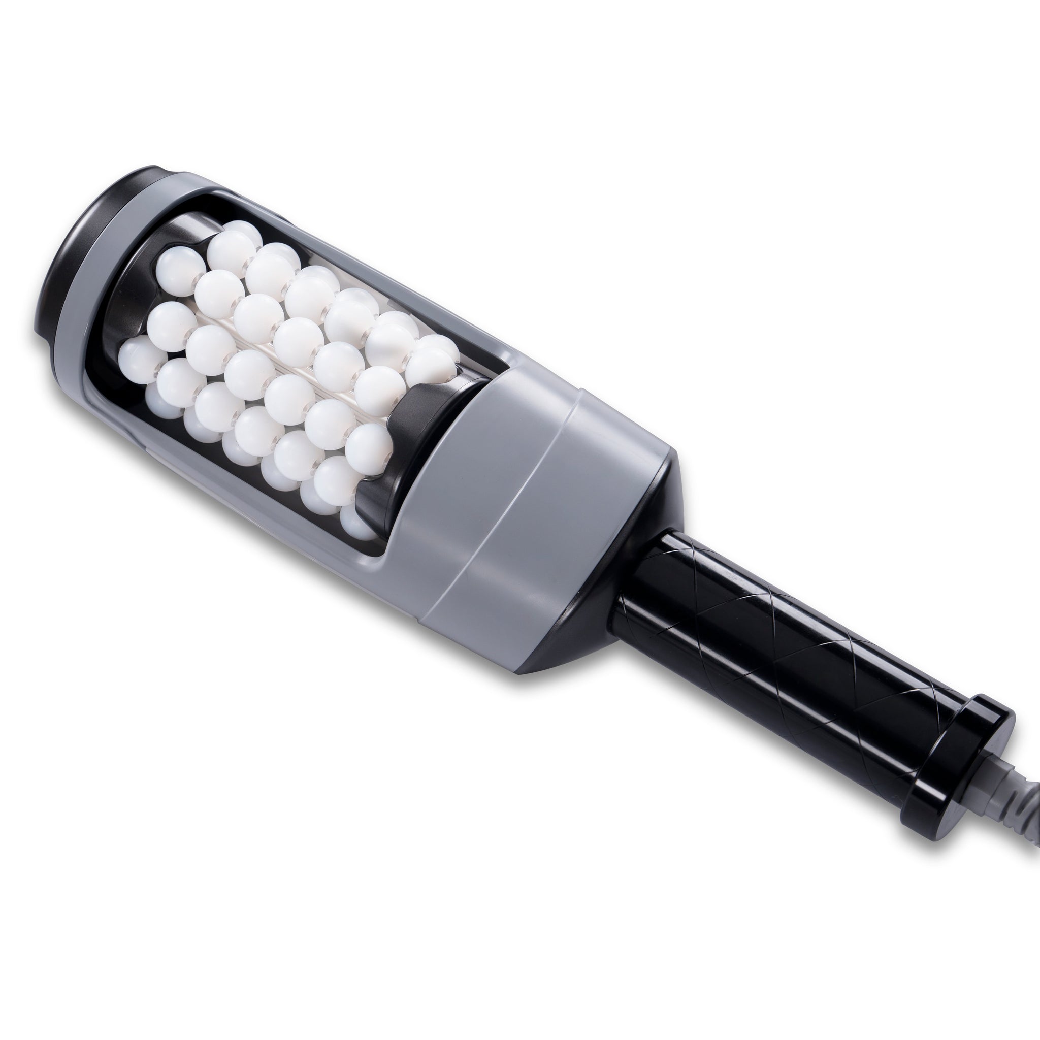 Hand-piece #2: the Smart-Sphere Toning Massager delivers a "vascular workout" for the body, stimulating the underlying tissues through a combination of compression and micro-vibration. This therapy firms muscles, reduces cellulite, improves skin texture & elasticity, annd enhances lymphatic drainage. (For Body and Face)