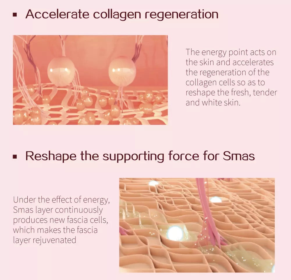 Unlike other brands, our Mini HIFU Machine uses an accurate and patented "Positioning indicator line", the function of which is to accurately focus the energy. It is safe and protective with more comprehensive effect.